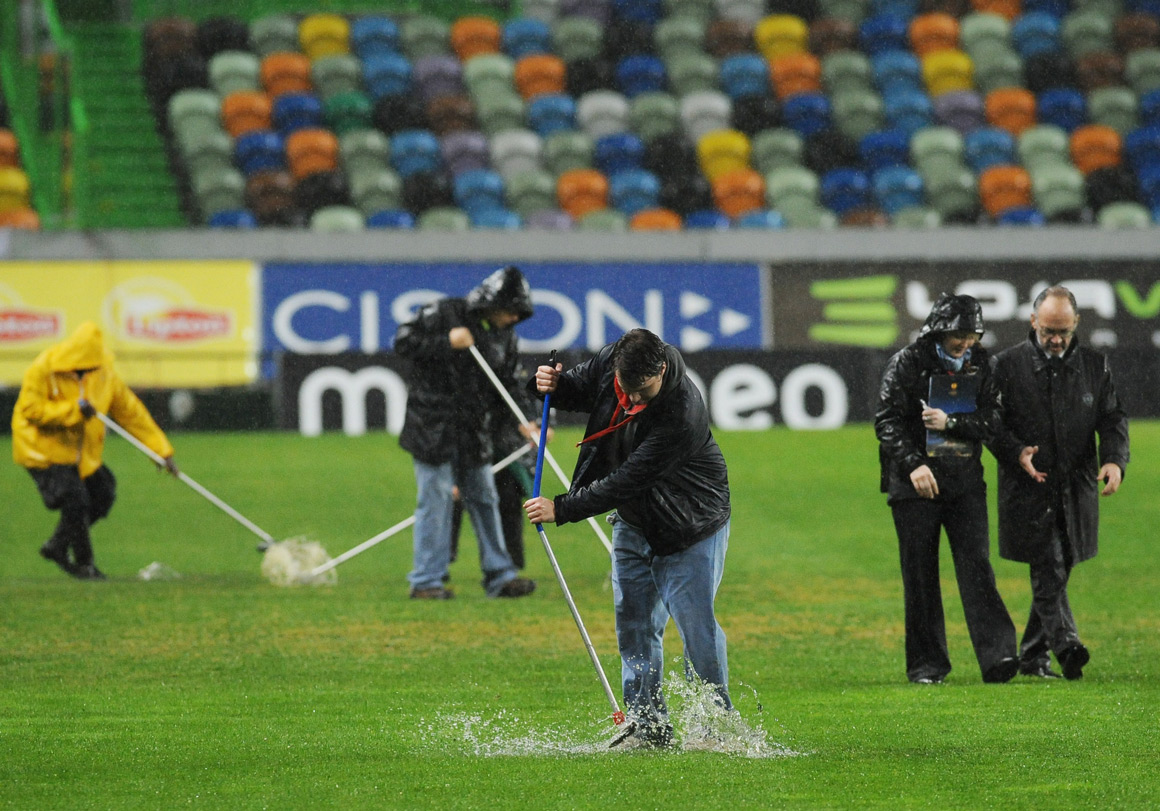 Há duas semanas atrás, o jogo pasteis-LOL b, a disputar no Restelo, em Lisboa, foi adiado pelos mesmos motivos, relvado completamente encharcado, sem condições nenhumas para a prática de futebol. No mesmo dia também em Lisboa note-se, disputou-se no Estádio da Luz o Benfica-Olhanense. O relvado esteve impecável, do primeiro ao último minuto.